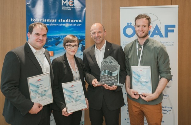 Grund zum Feiern gibt es am Management Center Innsbruck®: Der Gastgeber der diesjährigen Abschlussveranstaltung des Österreichischen Tourismus-Forschungspreises "Tourissimus" gewann nach 2017 auch 2018 den begehrten Preis vor der Wirtschaftsuniversität Wien und der Fachhochschule Salzburg. Grundlage für die hochkarätige Auszeichnung sind die durchgängig hervorragend bewerteten Einreichungen der MCI-Tourismus-Masterabsolventen/innen Astrid Sommer, Martin Anderl und Jannis Braun.