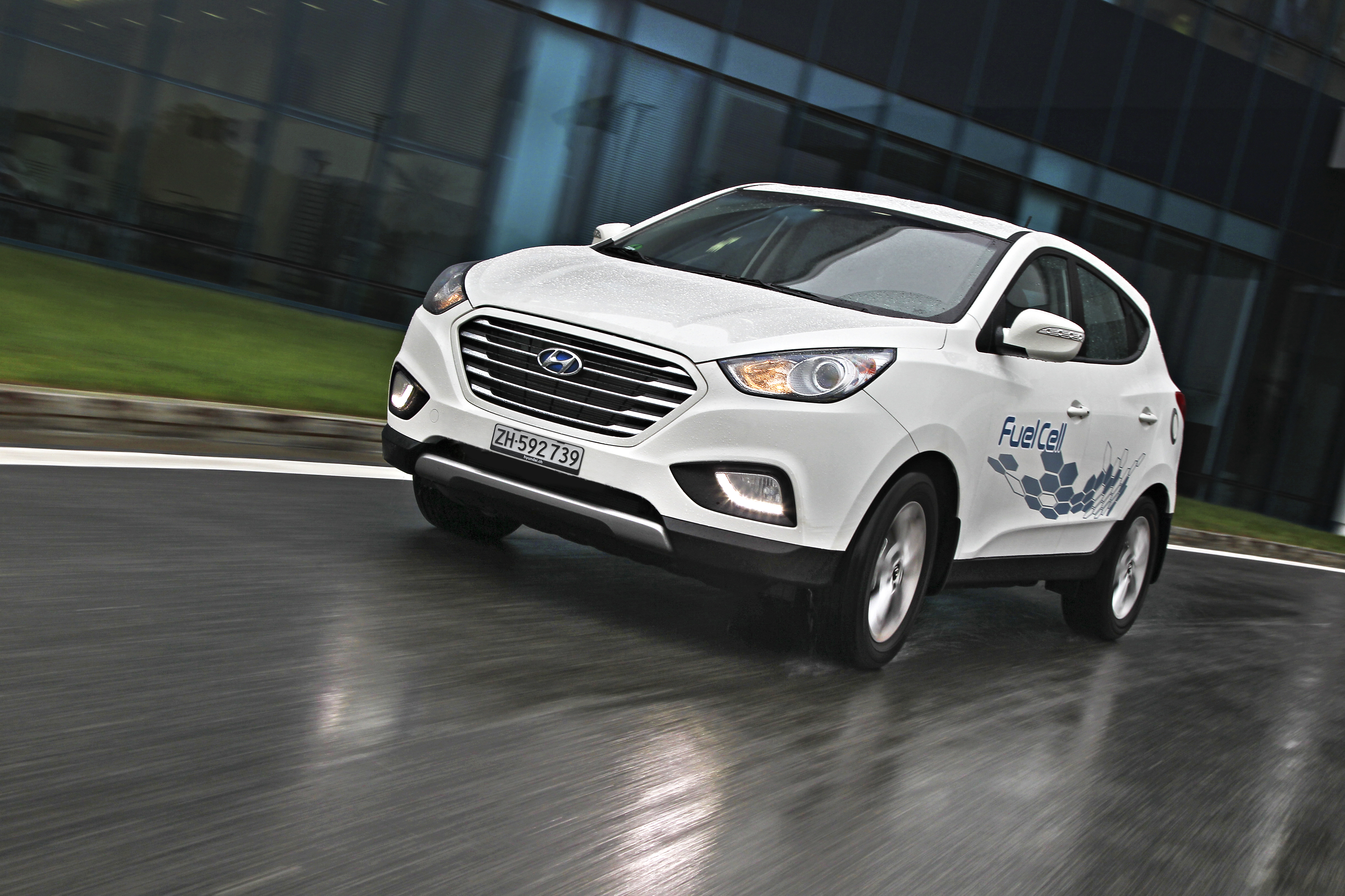Le tout premier véhicule de série fonctionnant à l'hydrogène est livrable dès maintenant en Suisse, au prix de CHF 66'990.-. L'ix35 Fuel Cell est un crossover compact pratique, dont le plein d'hydrogène est fait en 3 minutes et qui dispose d'une autonomie d'environ 600 km. Parallèlement à sa commercialisation, Hyundai Suisse prévoit cette année l'installation de la première station-service de Suisse délivrant de l'hydrogène comprimé à 700 bars, en coopération avec l'Empa, un établissement de recherche du domaine des EPF. D'autres projets de stations-service sont prévues à moyen terme par Coop et Axpo, avec l'expert industriel H2 Energy AG.