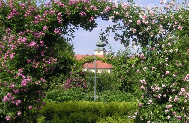 Die Gartenanlage des Stiftes Melk stellt einen wesentlichen Teil der gesamten Barockanlage dar und ist eine symmetrische Symbiose von Stiftsgebäude und Außenanlage. Der Klostergarten der Erzabtei Pannonhalma in Ungarn ist bekannt für heimische Kräuter und die Lavendelfelder, in einem Teehaus können die Kräuterteemischungen verkostet und Naturprodukte aus der Abtei-Werkstatt gekauft werden. Im Stiftsgarten des Stiftes St. Lambrecht werden vier Epochen der christlichen Heilsgeschichte durch die Elemente Erde, Wasser, Feuer und Luft dargestellt. Der Barockgarten des Stiftes St. Paul im Lavanttal ist nach dem Vorbild einer Darstellung aus dem Jahre 1623 angelegt worden, wo heute ein "Hildegardium" anschließt. Rosenpracht und Blütenzauber - Im barocken historischen Hofgarten des Stiftes Seitenstetten erblühen über 110 verschiedene Rosenarten in all ihrer Schönheit.