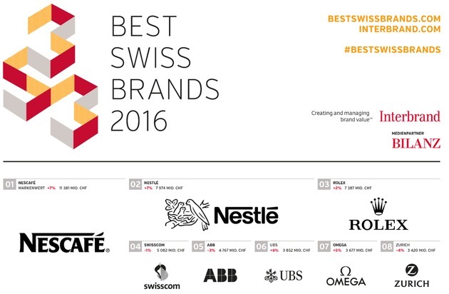 Best Swiss Brands 2016: Interbrand kürt die wertvollsten Marken der Schweiz