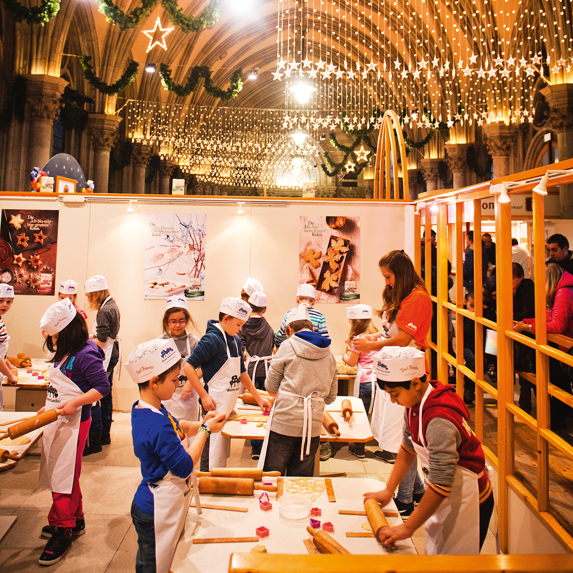 Strahlen werden aber nicht nur die Lichter am Christkindlmarkt und auf den bunt geschmückten Bäumen des Rathausparks. Einen ganz besonderen Glanz bekommen alle Kinderaugen, wenn sie plötzlich das Wiener Christkindl entdecken, das durch den Park wandert oder in "Christkindls Werkstatt" seine eifrigen Helfer/innen unterstützt. Denn dort wird gebacken und gebastelt, was das Zeug hält.