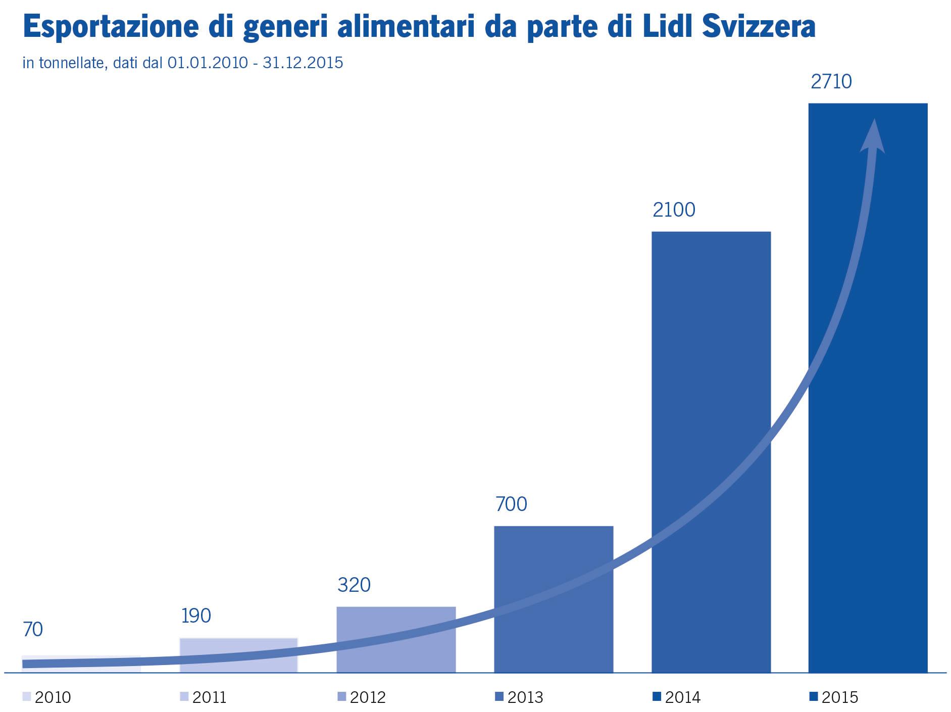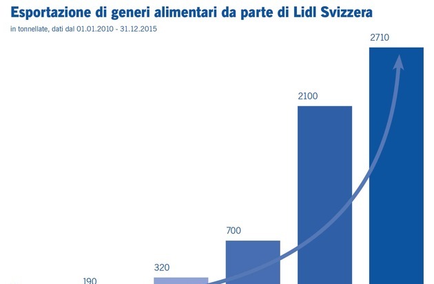 Nonostante il franco forte, nel 2015 Lidl Svizzera è riuscita a incrementare le esportazioni del 30% rispetto all'anno precedente. Sono state esportate 2710 tonnellate di prodotti di qualità svizzeri.