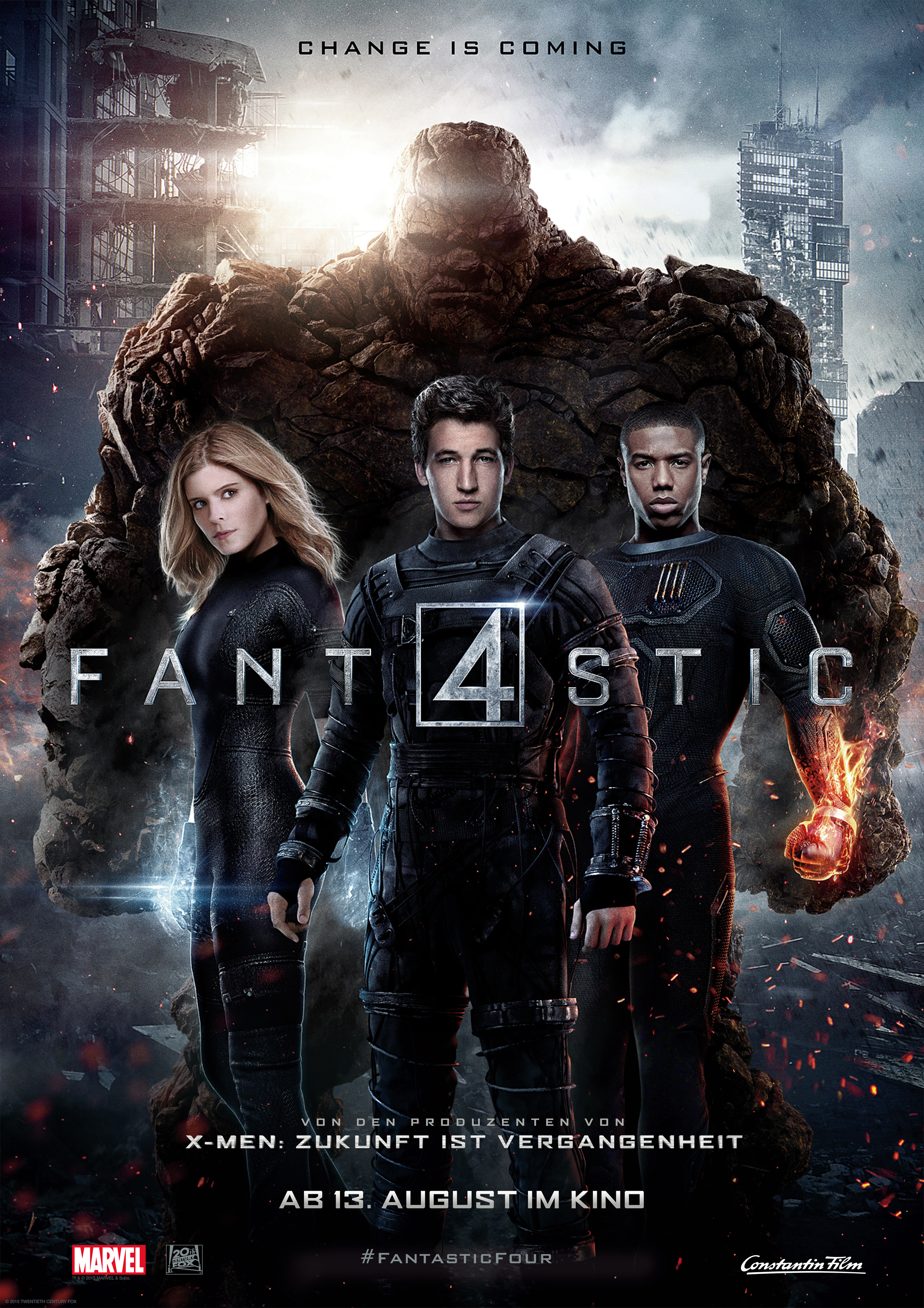 Darsteller: Miles Teller, Michael B. Jordan, Kate Mara, Jamie Bell, Toby Kebbell, Reg E. Cathey, Tim Blake Nelson Regie: Josh Trank Drehbuch: Jeremy Slater und Simon Kinberg & Josh Trank Produzenten: Simon Kinberg, Matthew Vaughn, Hutch Parker, Robert Kulzer, Gregory Goodman Executive Producer: Stan Lee