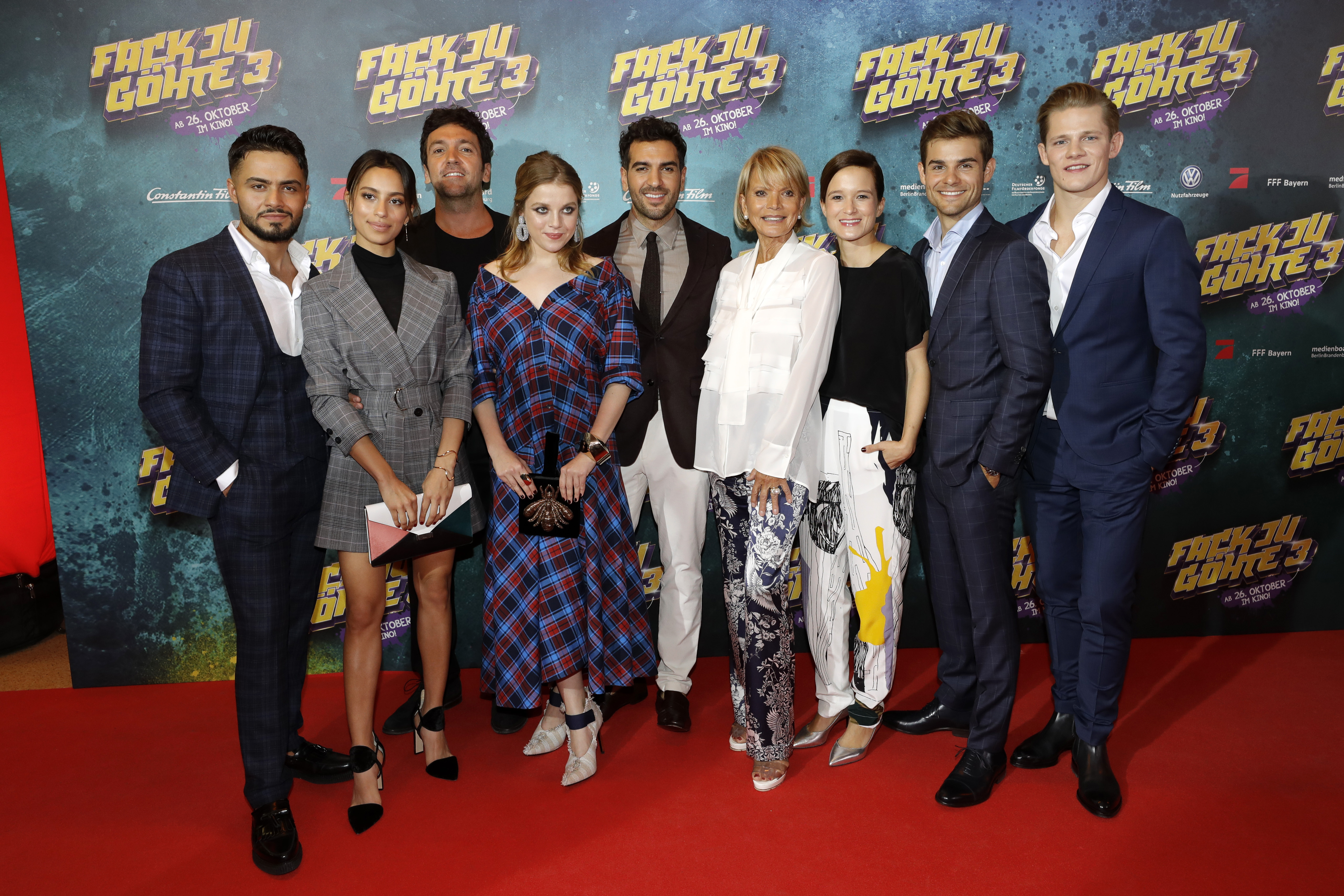 Für die Premiere des #FINALFACK war die gesamte GÖHTE-Crew vor Ort, um gemeinsam den dritten und letzten Teil der Schulkomödie vorzustellen: Neben dem Regisseur und Drehbuchautor Bora Dagtekin, Produzentin Lena Schömann und Constantin Film-Vorstandsvorsitzender Martin Moszkowicz waren natürlich auch Superlehrer Elyas M'Barek, Katja Riemann und die Chaosschüler Jella Haase, Max von der Groeben, Gizem Emre, Aram Arami, Lucas Reiber und Lena Klenke gekommen, die ihr Lieblings-Prankopfer Frau Leimbach-Knorr alias Uschi Glas auf dem Roten Teppich verschonten.