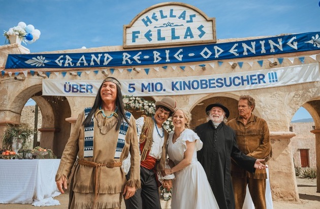 Die Erfolgsgeschichte von Michael Bully Herbigs DAS KANU DES MANITU erreicht einen neuen beeindruckenden Meilenstein: 5.002.722 Millionen Besucher haben seit dem Kinostart am 14. August ein Ticket für die Western-Komödie gelöst, und auch nach knapp 15 Wochen im Kino trifft die Abenteuerkomödie ungebremst und generationenübergreifend den Nerv des Publikums.