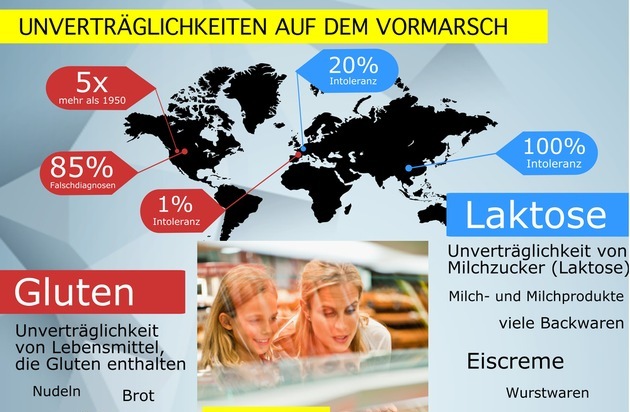 Betroffene vor Laktose und Gluten und zeigt "frei-von"-Produkte