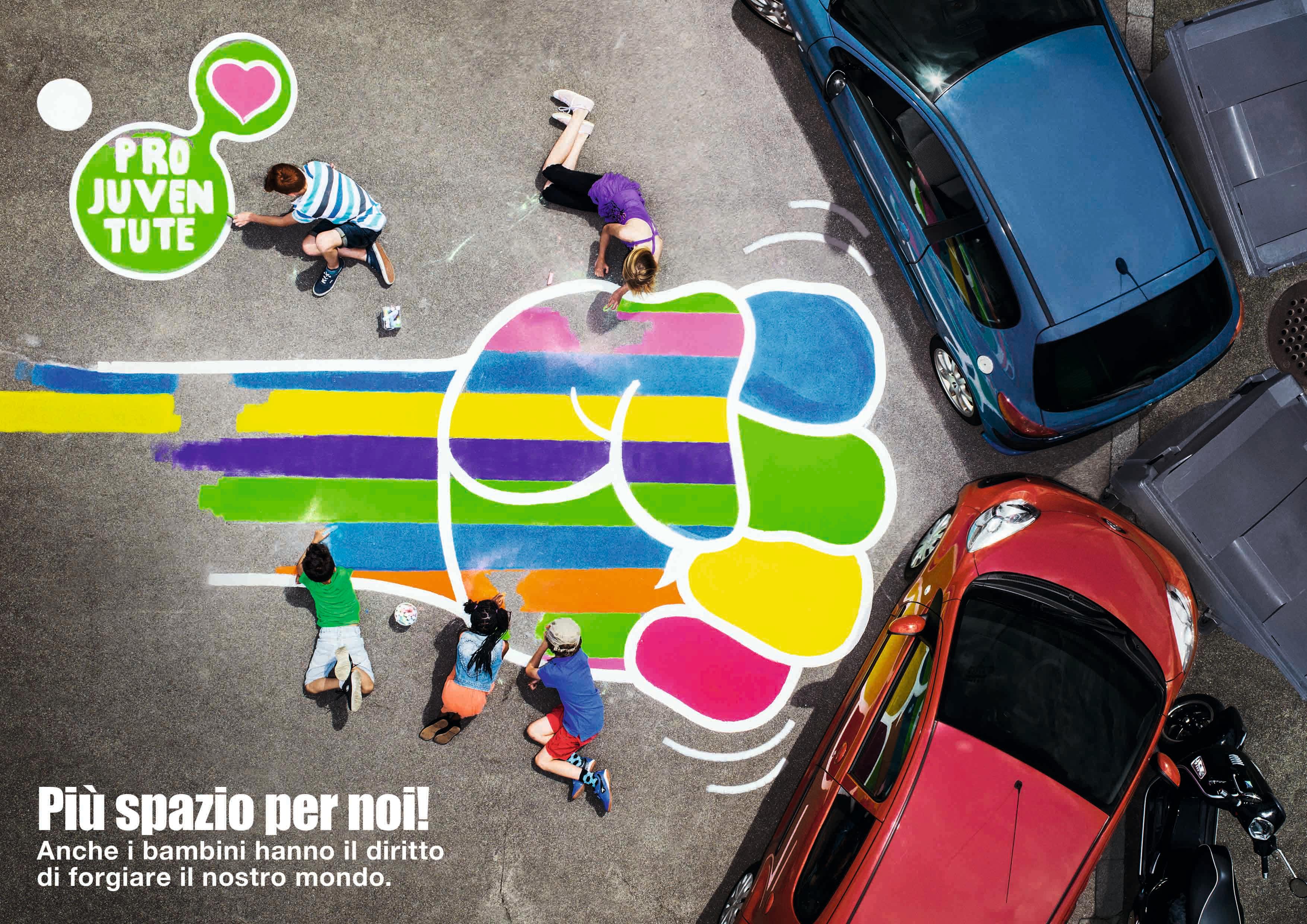 La app per bambini «Più spazio per te!» è stata realizzata da Pro Juventute in collaborazione con il centro specializzato SpielRaum di Berna e lo sviluppatore di videogiochi svizzero Matthias Sala, presidente della Swiss Game Developpers Association (SGDA). La app sollecita i bambini a scoprire il loro ambiente circostante per sviluppare in modo ludico e interattivo una maggiore consapevolezza di luoghi adatti negli spazi pubblici. I bambini possono inserire i luoghi pubblici in una mappa della Svizzera e valutarli positivamente o negativamente secondo i loro criteri di idoneità. In questo modo si creerà una mappa della Svizzera contenente luoghi adatti ai bambini come utile fonte d'informazione per i bambini stessi, ma anche per i genitori e le persone di riferimento. Da subito la app «Più spazio per te!» può essere scaricata gratuitamente.