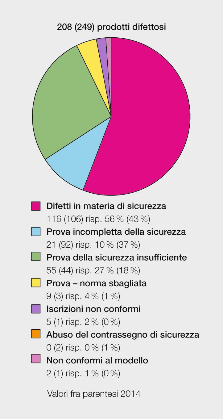 A tutt'oggi un prodotto elettrotecnico su sette viene contestato Il 15% dei prodotti elettrici controllati nel 2015 dall'Ispettorato federale degli impianti a corrente forte ESTI presentava dei difetti. Si sono dovuti emanare 82 divieti di vendita e blocchi di vendita. Sono stati inoltre pubblicati 17 ritiri e informazioni relative alla sicurezza di prodotti provenienti dai settori Economia domestica, Abitazione e IT nonché da quello della Domotecnica, e i consumatori ne sono stati informati.