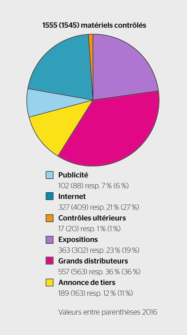 1555 matériels contrôlés ont été répertoriés à l'occasion de visites effectuées chez les grands distributeurs, sur des marchés spécialisés, chez les fabricants et dans des foires ainsi que dans le cadre de contrôles sur les sites Internet et dans les médias imprimés. Des contrôles ont aussi été réalisés à la suite d'informations fournies par des consommateurs, des concurrents et des professionnels du domaine électrique.