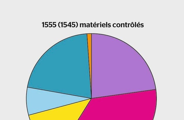 Au total 217 matériels présentant des défauts ont été répertoriés, soit 14% de tous les matériels électriques contrôlés. Dans 117 cas, il s'agissait de défauts concernant la sécurité.