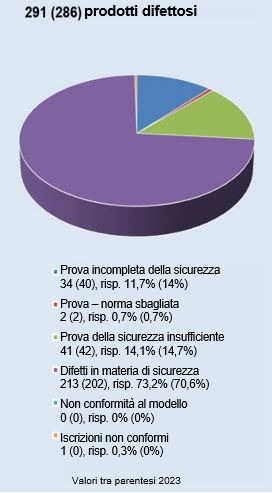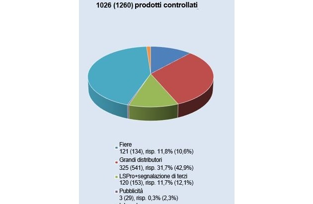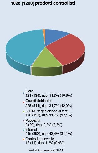 Nel 2024 sono stati controllati complessivamente 1026 prodotti. I controlli sono stati effettuati sia online che in loco nei punti vendita e nei mercati specializzati. Inoltre i controlli sono stati effettuati direttamente presso i fabbricanti, nell'ambito di fiere specializzate e sulla base di segnalazioni di terzi.