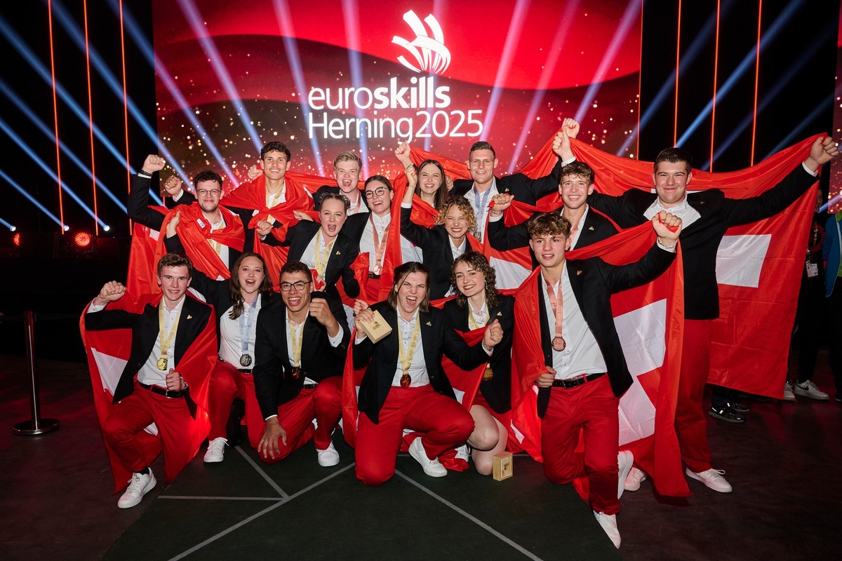 Die EuroSkills 2025 waren für das SwissSkills National Team ein grosser Erfolg. Nicht weniger als elf Medaillen konnten die Schweizer Berufstalente in den 14 Skills, in denen sie angetreten waren, gewinnen – darunter sechs goldene. Die Schweiz kürt sich damit zur besten Nation dieser Titelkämpfe. Dies dank dem höchsten Durchschnittswert der Medaillenpunkte pro Berufstalent aller teilnehmenden Nationen. Entsprechend positiv fällt das Fazit von Technical Delegate Martin Erlacher aus: «Wir sind unglaublich stolz auf die Leistungen, die unsere Berufstalente erbracht haben. Elf Medaillen aus vierzehn Skills zu holen – das muss man zuerst einmal schaffen.»