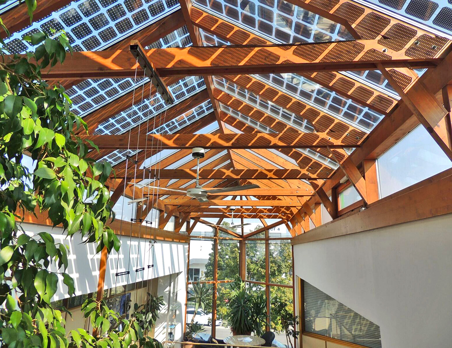 "Das Kosten-Nutzenverhältnis bei den in unserem Wintergarten eingesetzten Materialien stimmt zu 100 Prozent. Wir profitieren von zusätzlichen, auch optisch attraktiven Verschattungsmöglichkeiten, die sowohl im Sommer als auch im Winter positiv zu unserer Energiebilanz beitragen," betont Mag. Christa Gätz-Thurnher Geschäftsführerin bei ALCO Wintergärten, die das Glasdach Ihres Schauraumes mit semitransparenten Laserzellen in Kombination mit einer Dreifach-Isolierverglasung ausstatten ließ.