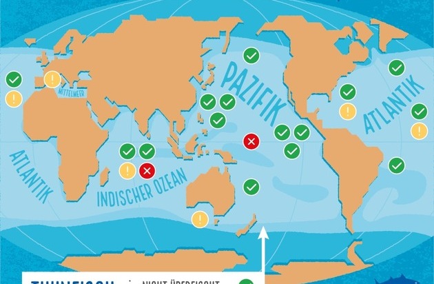 Von den 23 Thunfischbeständen, die kommerziell befischt werden, sind 15 in einem guten Zustand, sechs befinden sich auf einem mittleren Niveau und lediglich zwei - der Blauflossenthunfisch im Pazifik und der Großaugenthunfisch im Indischen Ozean - sind überfischt.