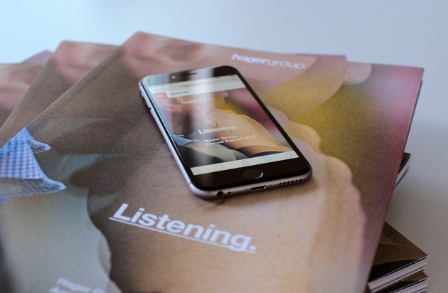 Neben der Druckfassung gibt es den Hager Group Annual Report 2015 auch als digitale Version - angereichert mit vielen ergänzenden Videos, Hörerlebnissen (passend zum Thema "Zuhören"), Bildergalerien, weiterführenden Links und anderen spannenden Features. Die Inhalte können dabei responsive auf einem Desktop, Tablet und, zum allerersten Mal, auch auf einem Smartphone dargestellt werden. Zudem ist der digitale Annual Report auch als App für Apple- und Android-Geräte verfügbar.