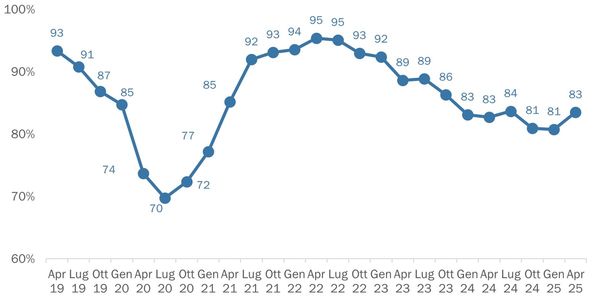 Le previsioni per il secondo trimestre si confermano prudenti: circa metà delle aziende non prevede alcuna variazione in termini di fatturato, incarichi e margini rispetto all’anno precedente. Sul fronte del personale, la quota sale addirittura a due terzi. Il saldo delle stime rimane negativo per tutti gli indicatori. Attualmente il lavoro ridotto interessa il 17% delle aziende, e in circa un terzo di loro riguarda oltre il 40% del personale.