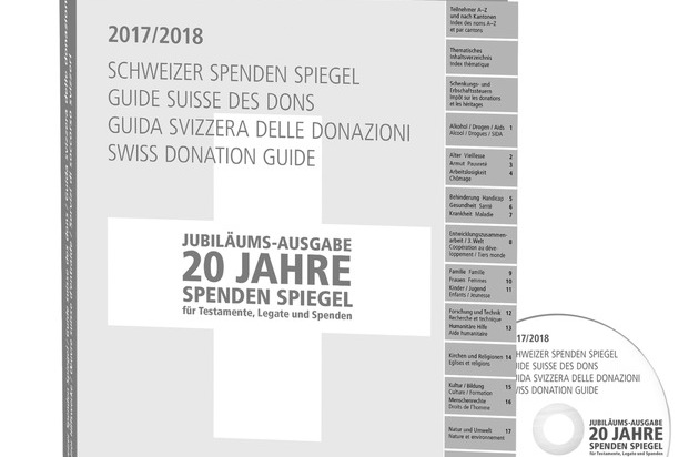 Der 500-seitige, leserfreundlich gestaltete Ratgeber erleichtert die Entscheidung in Erbschafts- und Spendenfragen. Thematisch aufgelistet, bietet der Schweizer Spenden Spiegel Details zu über 300 Hilfswerken sowie Informationen zu Erbschafts- und Schenkungssteuern in den einzelnen Kantonen.
