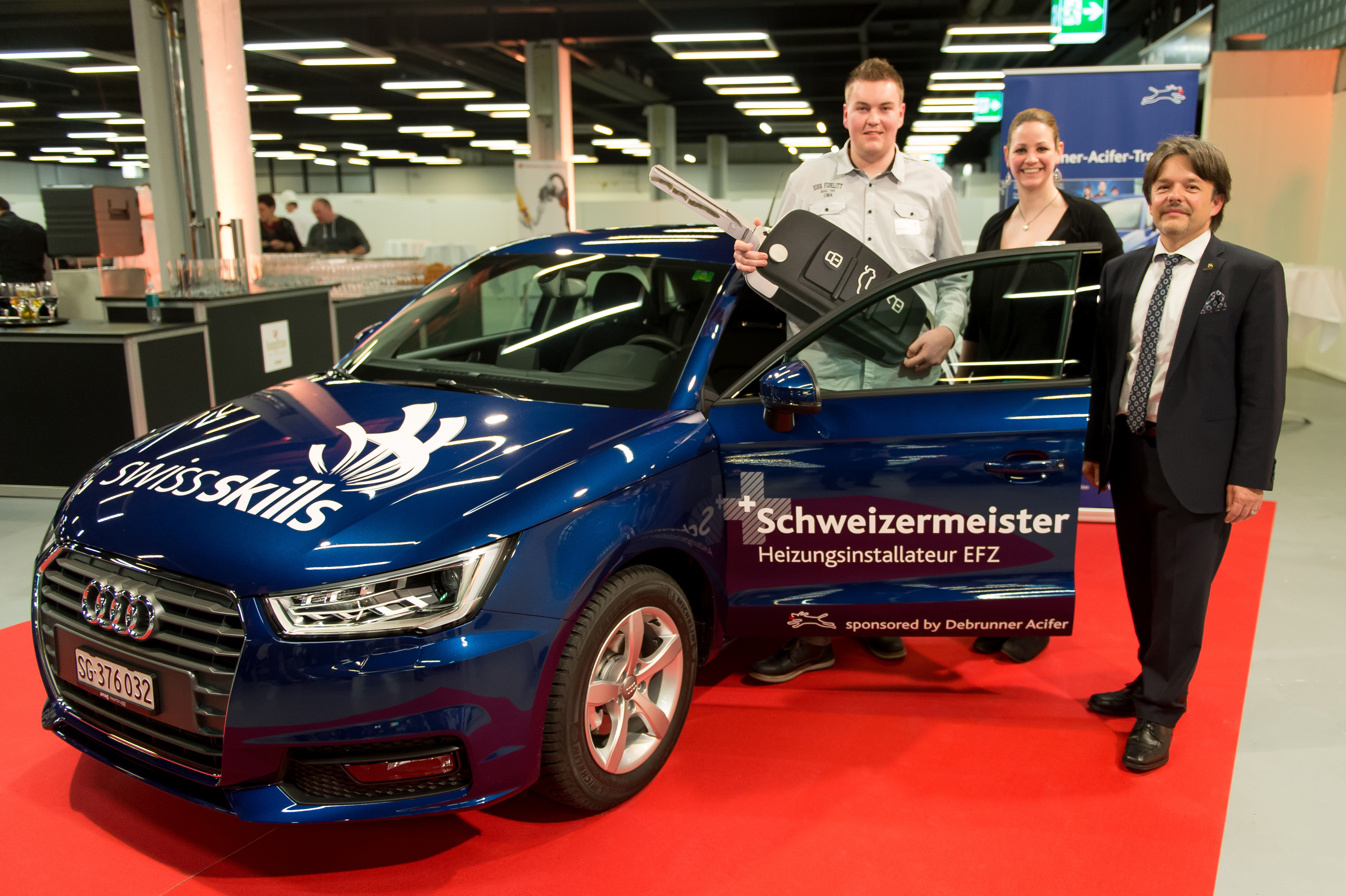 Der Heizungsinstallateur Mario Eggerschwiler hat mit 578.50 Punkten ein hervorragendes Resultat erzielt und so absolut verdient die diesjährige Debrunner Acifer Trophy gewonnen. Als Belohnung für die herausragende Leistung hat ihm Debrunner Acifer Gruppenleitungs-Mitglied Patrik Forster die Autoschlüssel für den SwissSkills Schweizermeister-Audi A1 feierlich überreicht. Das Auto steht ihm als Gewinner der Debrunner Acifer Trophy nun während eines Jahres zur freien Fahrt zur Verfügung. Damit möchte Debrunner Acifer als Gold Sponsor des SwissSkills Team, der Schweizer Berufsnationalmannschaft, die jungen Berufstalente der Schweiz zusätzlich zu Höchstleistungen anspornen.