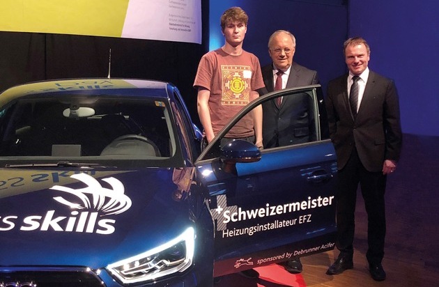 Le chauffagiste Elias Reber est le gagnant du Trophée Debrunner Acifer 2017. Le jeune professionnel de Wasen (BE) a obtenu le meilleur score parmi tous les champions suisses, s'imposant ainsi au classement général. En récompense de cette performance, Debrunner Acifer, sponsor d'or de l'équipe SwissSkills, a remis à Elias Reber les clés de l'Audi A1 du champion suisse, et ce pour une année. Lors des championnats suisses des métiers 2017, les meilleurs talents suisses ont une fois de plus prouvé qu'ils sont capables de grandes réalisations. Au cours des «SwissSkills Competitions», les apprentis talentueux se sont affrontés dans 27 professions différentes et ont maîtrisé des tâches exigeantes de leur vie professionnelle quotidienne sous une pression de temps considérable. Elias Reber a obtenu le meilleur score de tous les champions suisses des métiers. En compagnie des autres champions suisses des métiers, le jeune chauffagiste de Wasen (BE) a été distingué par le Conseiller fédéral Johann Schneider-Ammann, chef du département fédéral de l'économie, de la formation et de la recherche lors du SwissSkills Day (22.02.2018) à Berne.