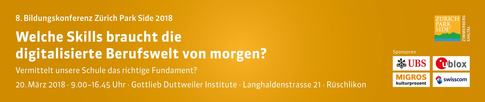 Die Digitalisierung stellt an alle Berufe und deren Ausbildung neue und teils ande-re Anforderungen. Die diesjährige Bildungskonferenz Zürich Park Side befasst sich mit der Frage, ob die Schulen auf das veränderte Umfeld vorbereitet sind und die Schüler mit den notwendigen Voraussetzungen in die Berufsbildung entlassen. Müssen die jungen Menschen speziell darauf vorbereitet werden und was erleben sie beim Berufseintritt?