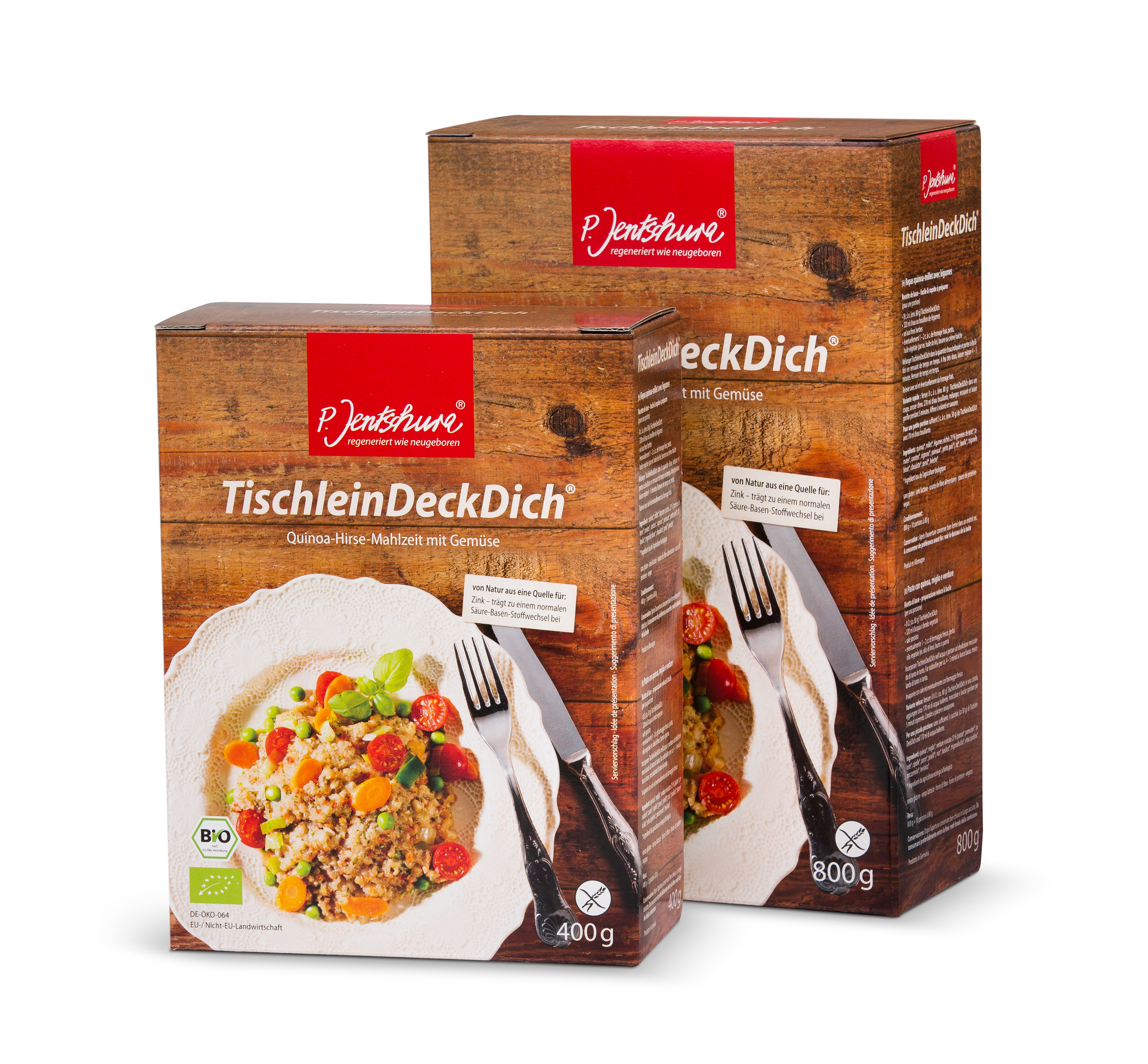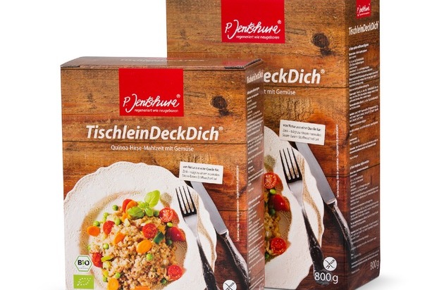 Mit der Quinoa-Hirse-Mahlzeit "TischleinDeckDich" hat die Marke P. Jentschura jetzt auch das letzte Produkt ihrer Lebensmittelpalette auf Bio umgestellt. Zudem hat der internationale Marktführer basischer Produkte den Geschmack des Naturprodukts weiter verfeinert und die Verpackung komplett einem Relaunch unterzogen.