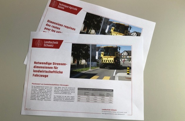 In der Landwirtschaft eingesetzte und für den Strassenverkehr zugelassene Maschinen (Ausnahmefahrzeuge) dürfen bis zu 3,50 m breit sein, was bei vielen Strassenbauten nicht berücksichtigt wird. Der Verband Landtechnik Schweiz hat dazu ein neues Merkblatt herausgegeben.