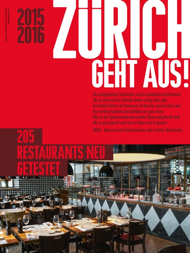 Das neue ZÜRICH GEHT AUS! 2015/16 ist da. Mit 205 neu getesteten, empfehlenswerten Restaurants. Auf 300 Seiten. Für jeden Geschmack das Richtige.