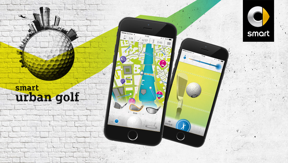 Giocare a golf senza attrezzature pesanti, costose iscrizioni a circoli di golf e onerosi corsi di preparazione - in ogni angolo del mondo. Ciò che suona come un sogno esiste davvero. Mixed Reality è la parola magica che desta l'entusiasmo di tantissime persone anche al di fuori dell'ambiente del gaming. L'app "smart urban golf" rende il golf un'esperienza divertente per tutti, unendo un gioco digitale a un'esperienza reale. L'app che trasforma ogni smartphone in un bastone da golf è stata messa a punto dai giovani sviluppatori di giochi e pionieri della Mixed Reality dello studio "Gbanga" con sede a Zurigo in collaborazione con smart. smart, il marchio automobilistico sinonimo di mobilità urbana, si mostra particolarmente innovativo quando si tratta di rendere più vivibile la vita in città e si impegna in una serie di iniziative e progetti volti a sondare ed evolvere il futuro nelle città. In tale contesto smart promuove idee creative per una vita migliore in città - non solo nel campo della mobilità. Marcel Guerry, CEO della Mercedes-Benz Svizzera SA: "Con l'app "smart urban golf" vogliamo dare ai cittadini la possibilità di riscoprire la propria casa divertendosi e portare in un modo innovativo la gioia di vivere nelle città svizzere".