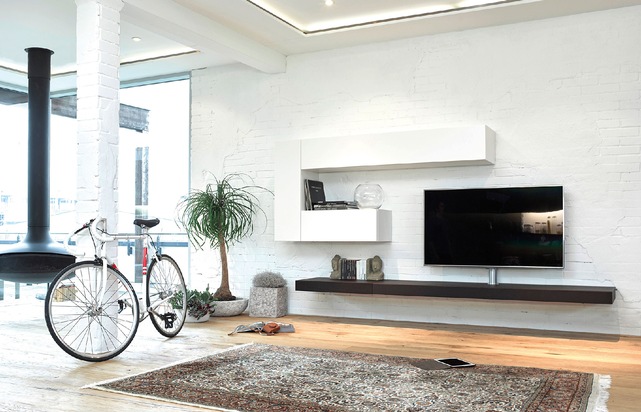 Twenty von Spectral: die smarte Verbindung aus Home und Entertainment Zur imm cologne 2015 präsentiert der Smart-Furniture-Pionier Spectral die neue Möbelserie Twenty. Twenty ist ein puristisches, einfach zu konfigurierendes Kastenmöbelprogramm mit lackierten und furnierten Oberflächen. Es verbindet Home mit Entertainment und bietet alles, was die Möbelplanung und das Leben einfach macht. Highlight der Serie ist ein superflaches integriertes Soundsystem, das sich vollkommen unsichtbar in einem dekorativen Board verbirgt. Besonders smart ist die kabellose Steuerung des Soundsystems und Fernsehers per Smartphone oder Tablet Kinderleicht planbar dank Rastermaß 20 Dank eines Rastermaßes von 20 cm wird Möbelplanung bei Twenty zum Kinderspiel. Wie beim Spielklassiker Tetris werden die hochformatigen, querformatigen und quadratischen Kastenelemente einfach links und rechts aneinandergereiht oder übereinander gestapelt. Da die Elemente immer bündig abschließen, ist Twenty jederzeit um zusätzliche Möbelelemente erweiterbar. Oberflächen und Farben Die Oberflächen von Twenty sind seidenmatt lackiert bzw. furniert. Zur Auswahl stehen 26 aktuelle Lackfarben und die drei Furniere Sand Oak, Indian Walnut und Dark Oak. Die stoffbespannten Lautsprecherabdeckungen gibt es in den drei Farben Black, Silver und Carbon. Unzählige Gestaltungsmöglichkeiten Die Kastenbreiten variieren von 20 cm bis 160 cm, die Kastenhöhen von 10 cm bis 180 cm. Angebotene Kastentiefen sind 38 und 48 cm. Ergänzend dazu gibt es Regalboards in den Tiefen 28 und 48 cm. Die Kästen gibt es wahlweise offen, mit Klappe, mit Tür, mit Schublade oder mit Stoffabdeckung. Die Fronten von Twenty sind grifflos und werden per Touch-System bedient. Platziert wird Twenty wandhängend, auf einem Kufenfuß oder auf einem flachen Sockel. Unsichtbarer Sound Twenty bietet Ihnen vier Möglichkeiten der Soundintegration. Mit dem SCA3, dem BRA2 und dem High-End-System VRA2 stehen drei bewährte Spectral-Soundsysteme bereit. Alle Systeme werden ins Möbel integriert und verbergen sich hinter einer stoffbespannten Front. Eigens für Twenty entwickelt wurde das 7 cm flache XTA1, das sich in einem nur 10 cm flachen Musicboard versteckt. Alternativ gibt es Kastenelemente für Soundbars verschiedener Hersteller. Eine Fernbedienung für alles Alle neuen Soundsysteme von Spectral sind mit einer IR-Lernfunktion ausgestattet. Kunden benötigen also keine zusätzliche Fernbedienung oder komplizierte Universalfernbedienung, sondern können ihr Soundsystem mit ihrer gewohnten TV-Fernbedienung steuern. Drehbare TV-Halterung mit integrierter Kabelführung An der drehbaren Universal-Halterung können nahezu alle handelsüblichen Fernseher befestigt und bei Bedarf gedreht werden. Die Kabel werden unsichtbar in der Säule geführt, so ist kein zusätzlicher Kabelkanal notwendig. Anbindung von Smartphones und Tablets Besonders smart ist bei Twenty die Anbindung von Smartphones und Tablets gelöst: Bilder, Songs, Hörbücher und Videos können von der Festplatte des Mobilgeräts oder aus der Cloud kabellos an den Fernseher und das Soundsystem übertragen werden. Über den Internet-Zugang des Mobilgeräts oder Fernsehers besteht Zugriff auf beliebte Video-Portale wie YouTube oder Vimeo, Musikstreaming-Dienste wie Wimp oder Spotify und Foto-Netzwerke wie Pinterest, Instagram, Flickr oder Tumblr. Mit einem zusätzlichen Media Player wie z.B. Apple TV können Filme, Fernsehserien und Podcasts ausgeliehen oder gekauft und abgespielt werden. Passender Beistelltisch Connect Passend zu Twenty gibt es die Beistelltische Connect mit integriertem Universal- Dock zum Aufladen aller aktuellen Mobilgeräte von Apple. Das eingebaute Dock ist austauschbar, die Lösung damit zukunftssicher. Über Spectral/Kurzprofil Die Spectral Audio Möbel GmbH ist Pionier für Smart furniture. Das Unternehmen mit Sitz im schwäbischen Pleidelsheim (zwischen Stuttgart und Heilbronn) entwickelt Möbel mit intelligenten Zusatzfunktionen wie integrierte Lautsprecher und die Anbindung von Smartphones ins Wohnumfeld. Vertrieben werden die Produkte sowohl über ausgewählte Händler als auch über Möbelhäuser. Spectral wurde 1994 von den Brüdern Frank, Heiko und Markus Krämer gegründet. Heute wird das Unternehmen von Markus Krämer und René Glasmacher geführt. Es exportiert weltweit und beschäftigt bei einem Jahresumsatz von über 20 Millionen Euro 150 Mitarbeiter. Abdruck honorarfrei/Beleg erbeten Bilder-Download www.spectral.eu/presse