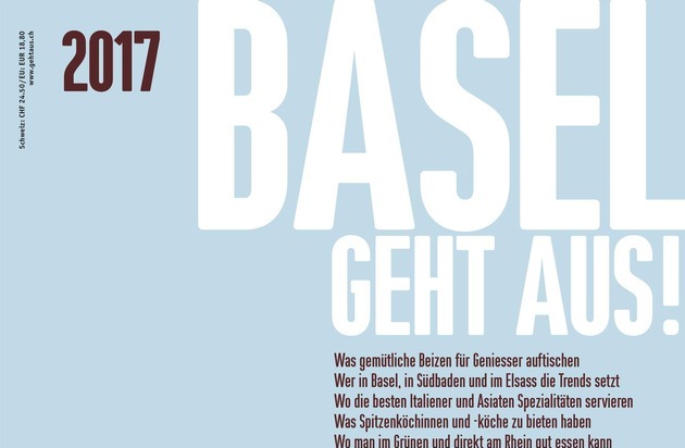 Erfolgsstory. BASEL GEHT AUS! erscheint bereits zum elften Mal, und es ist unschwer vorauszusagen, dass auch diese Ausgabe wieder zum Nr. 1 Bestseller aufsteigen wird. Für Feinschmecker ist am 30. November praktisch schon Weihnachten. Ab dann ist die druckfrische Ausgabe 2017 erhältlich. Für Fr. 24.50. Am Kiosk.