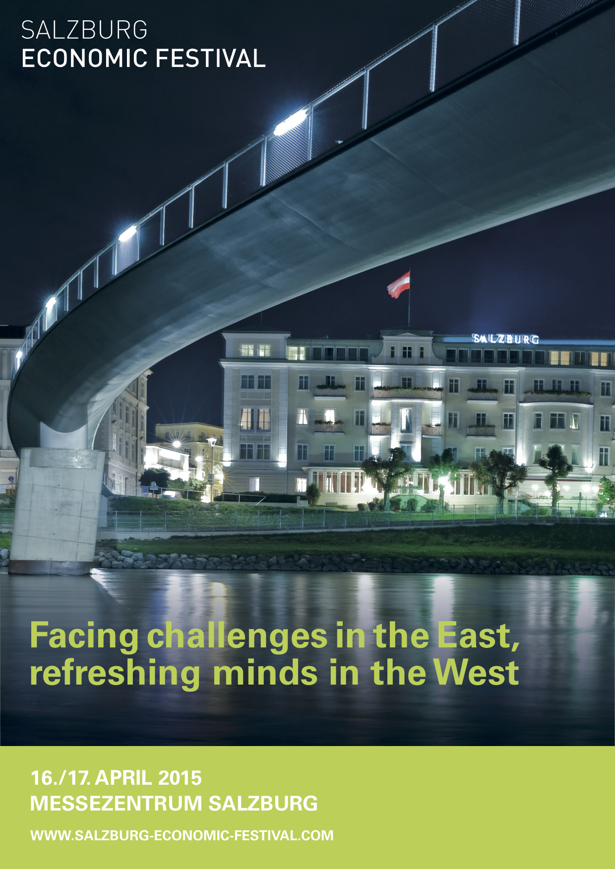 "Facing challenges in the East, refreshing minds in the West" - unter diesem Motto treffen sich beim Salzburg Economic Festival vom 16. bis 17. April 2015 wirtschaftspolitische Entscheidungsträger zum internationalen Gedankenaustausch und Networking. Zahlreiche Top-Speaker haben bislang zugesagt. Die ersten sieben großen Namen bereits vorab, die nächsten Bekanntgaben folgen die kommenden Wochen!