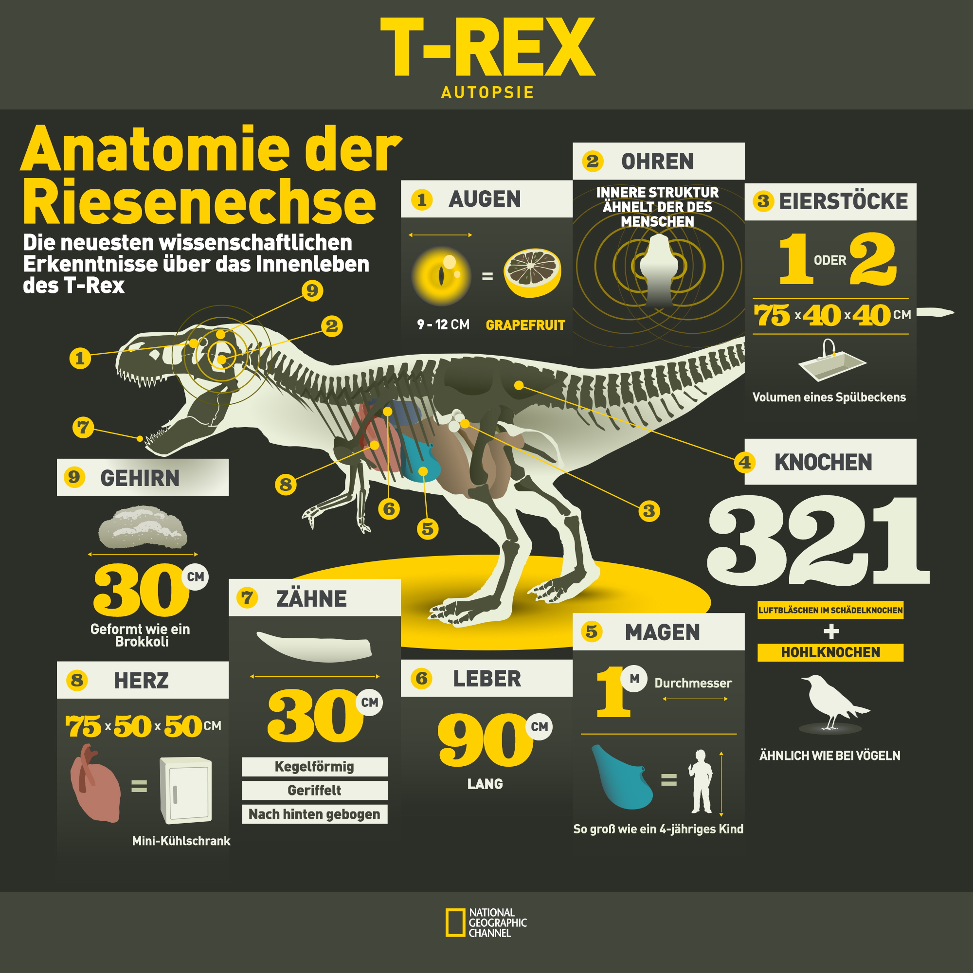 Autopsie"Sie beherrschten unsere Erde, wie es kein anderes Tier je wieder tat. Noch heute faszinieren sie die Menschen und lassen sie ungläubig erstaunen. National Geographic Channel enthüllt in aufwändig produzierten Dokumentationen vom 7. bis 13. Juni täglich um 21.00 Uhr neue wissenschaftliche Erkenntnisse rund um die Riesenechsen. Die "Dino-Week" gibt bemerkenswerte Antworten auf Fragen wie: "Wer waren T-Rex, Spinosaurus & Co?", "Wie lebten sie?" und "Warum starben sie aus?".