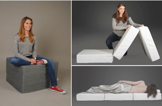 Schweizer Innovation: Gästebett und Sofahocker in einem