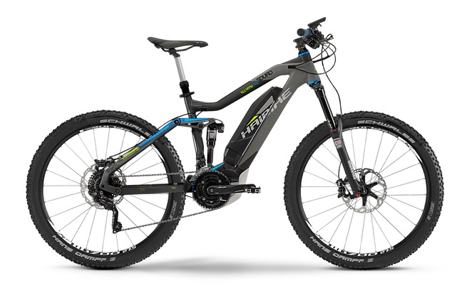 Angetrieben wird das Pedelec von einem leistungsstarken Bosch Performance Mittelmotor, der mit Hilfe der SkidPlate vollständig in den Rahmen integriert wurde. Erstmals ist auch die SkidPlate aus Carbon und fungiert als tragendes sowie stabilisierendes Rahmenbauteil. Der austauschbare Unterbodenschutz aus Carbon bewahrt den Antrieb vor Beschädigungen. Formschön ist auch der Lithium-Ionen Akku integriert, der eine Kapazität von 400 Wh aufweist und damit optisch mit dem Rahmen verschmilzt. Die Nachteile des antriebsbedingten, kleinen Ritzels werden durch das, zum Patent angemeldete, Haibike Sprocket Equalizing System (S.E.S.) ausgeglichen: Das Pully-Wheel lenkt am Schwingendrehpunkt die Kette um und simuliert ein größeres Kettenblatt.
