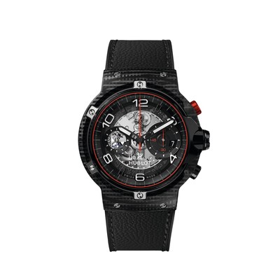 Eine weitere Premiere: das UNICO Manufakturwerk wurde in ein Classic Fusion Gehäuse mit 45mm Durchmesser eingebaut. Es wurde 2018 vorgestellt (HUB1280) und ist das zweite manufaktureigene Chronographen-Kaliber. Dieses durch vier Patente geschützte Automatikwerk mit Flyback-Chronograph schlägt mit einer Frequenz von 4 Hz (28 800 A/h) und zeichnet sich durch ein zifferblattseitig sichtbares Säulenrad aus. Nicht zuletzt überzeugt es durch seine geringe Höhe von nur 6,75 mm und einer Gangreserve von 3 Tagen. Diese neue Special Edition Serie ist in drei unterschiedlichen Gehäusen erhältlich: Titan (limitierte auf 1000 Stück), King Gold (limitiert auf 500 Stück) und 3D Carbon (limitiert auf 500 Stück).