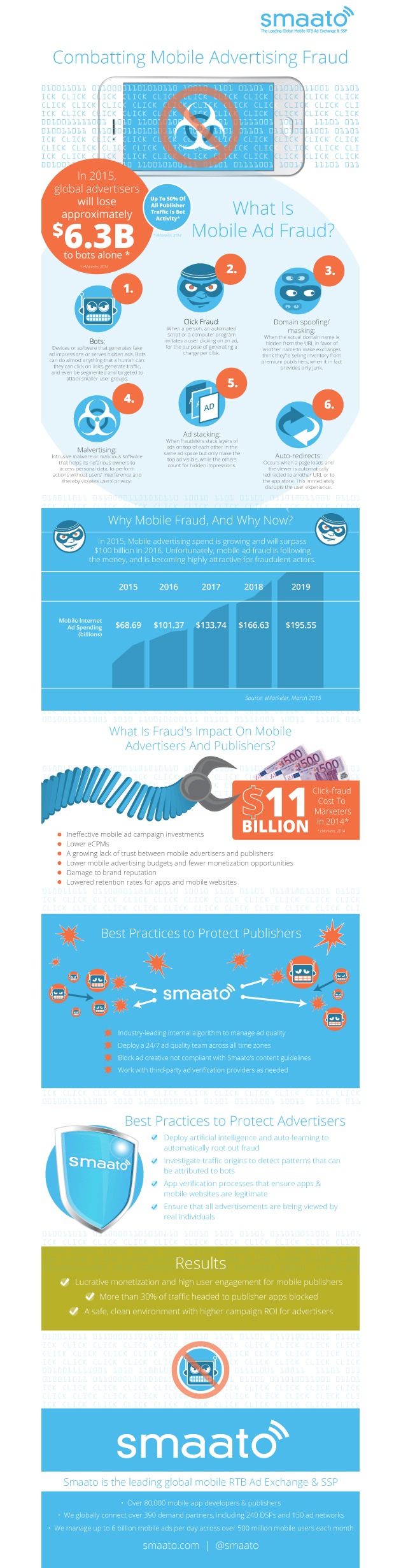 Während andere Plattformen sich für das Qualitäts-Management ihres Publisher-Inventars auf externe Partner verlassen, hat Smaato als Teil seiner Smaato Publisher Platform (SPX) (www.smaato.com/publishers/) einen eigenen, branchenführenden internen Algorithmus zur Fraudkontrolle entwickelt. Die Platform verhindert Traffic-Fraud, indem sichergestellt wird, dass alle Werbeinhalte echten Traffic erhalten und von realen Personen gesehen werden. Dies geschieht durch Überprüfungen der Herkunft des Traffics und der Zuordnung von Mustern zu Bot-Netzwerken sowie deren Kennzeichnung als Fraud. Darüber hinaus unterbindet Smaatos Plattform betrügerische Werbung und ermöglicht es Publishern, das Vertrauen ihrer Kunden aufrechtzuerhalten sowie die Nutzerbindung und Umsätze zu maximieren.