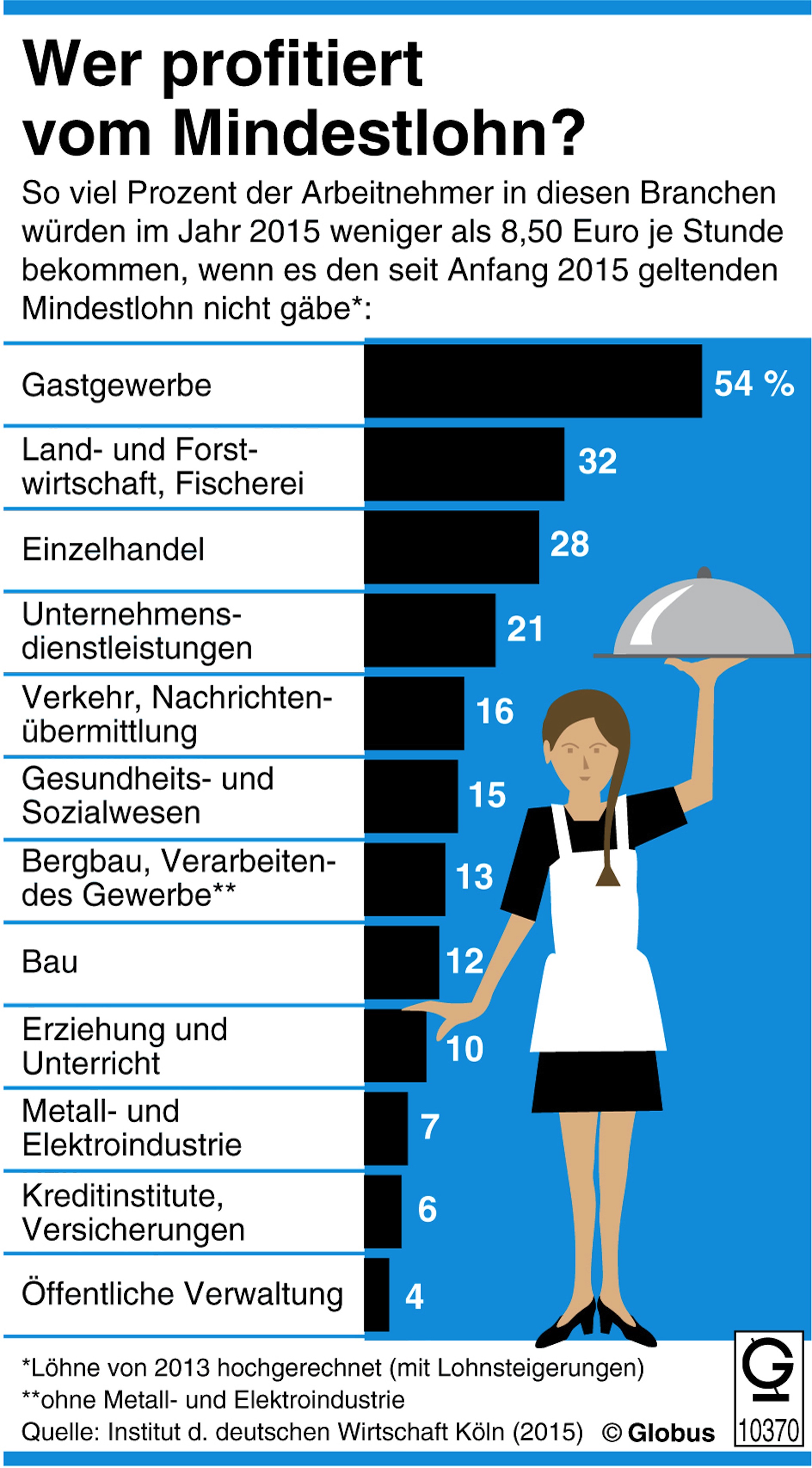 Grafiken liefern die wichtigsten Informationen und Hintergründe auf einen Blick. Seit mehr als 60 Jahren versorgt dpa-infografik, ein Tochterunternehmen der Nachrichtenagentur dpa, Medien, Unternehmen, Regierungen, Verbände und Bildungseinrichtungen mit spannenden Schaubildern zu den großen Themen aus Politik, Wirtschaft, Gesellschaft und Kultur. Monatlich veröffentlichen wir ein Highlight aus dem umfangreichen Angebot der dpa-infografik im Presseportal als "Grafik des Monats". Diesen Monat geht es um ein Arbeitsmarkt-Thema: Wer profitiert vom Mindestlohn?