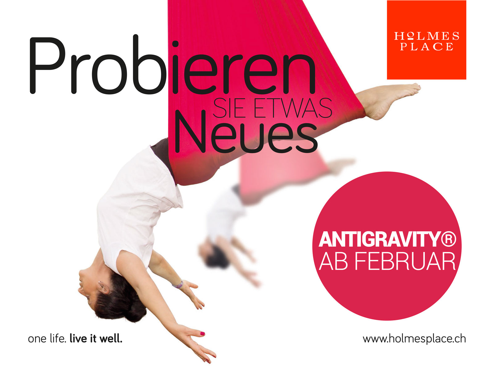 Nachdem das von Christopher Harrison entwickelte AntiGravity® Konzept fast zwei Jahre lang ausgetestet wurde, hat sich Holmes Place für 2014 und 2015 zu einer umfassenden Einführung der Methoden der AntiGravity® Techniques verpflichtet. Die AntiGravity® Programme setzen sich zusammen aus: AntiGravity® Aerial Yoga, AntiGravity® Suspension Fitness (Schlingentraining), AntiGravity® Pilates und vielen weiteren Trainingsmöglichkeiten, die noch folgen. Die 2007 eingeführten AntiGravity® Techniques leiteten die Ära des Aerial Yoga ein und wurden von vielen Berühmtheiten freudig aufgegriffen: von Gwyneth Paltrow bis zu Madonna und Richard Branson. AntiGravity® Fitness, mit lizenzierten Studios in über 60 Ländern, hat die folgenden Vorteile: Druckentlastung für die Wirbelsäule, Hydration der Bandscheiben, Ausstoß von Glückshormonen, Mobilisierung angespannter Gelenke, erweitertes räumliches Bewusstsein, Stärkung der Kernmuskulatur, körperliches/seelisches Gleichgewicht und erhöhte Neuroplastizität des Gehirns.