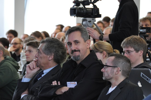 Martin Dougiamas, Begründer von Moodle und Special Guest, ist aus Perth/Australien angereist. Mit seiner Keynote hat er direkt aus dem Headquarter der Moodle -Entwicklung berichtet, neuste Planungen vorgestellt und aufgezeigt wohin der Weg in die Zukunft geht. "Moodle wird Open Source bleiben und Open Source in neue Sphären bringen. Anders als andere Unternehmen ist unser Motor der Wunsch, Lehrende mit Instrumenten auszustatten, die sie nach ihren Wünschen einsetzen können. Auch wenn wir eine Reihe kostenpflichtiger Dienstleistungen anbieten, sind diese doch ausschließlich dafür da, die Entwickler_innen unserer kostenlosen Software zu bezahlen", bemerkt Martin Dougiamas.