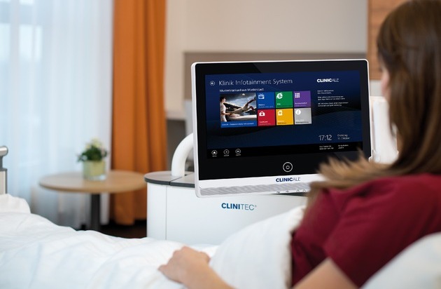 Eine neue Lösung hat das internationale Unternehmen ClinicAll mit seinem innovativen Bedside-Terminal "Made in Germany" entwickelt. Es verbindet nicht nur alle modernen Kommunikations-Applikationen auf Basis von Windows8(R), die es den Patienten ermöglichen internetbasiert zu kommunizieren, zu surfen, zu arbeiten, Video- und (Pay)-TV zu sehen u.v.m.., sondern ermöglicht darüber hinaus eine elektronische Betten- und Raumsteuerung (Klima, Helligkeit, Fenster) sowie Essens- und Getränkebestellung per Touchscreen.