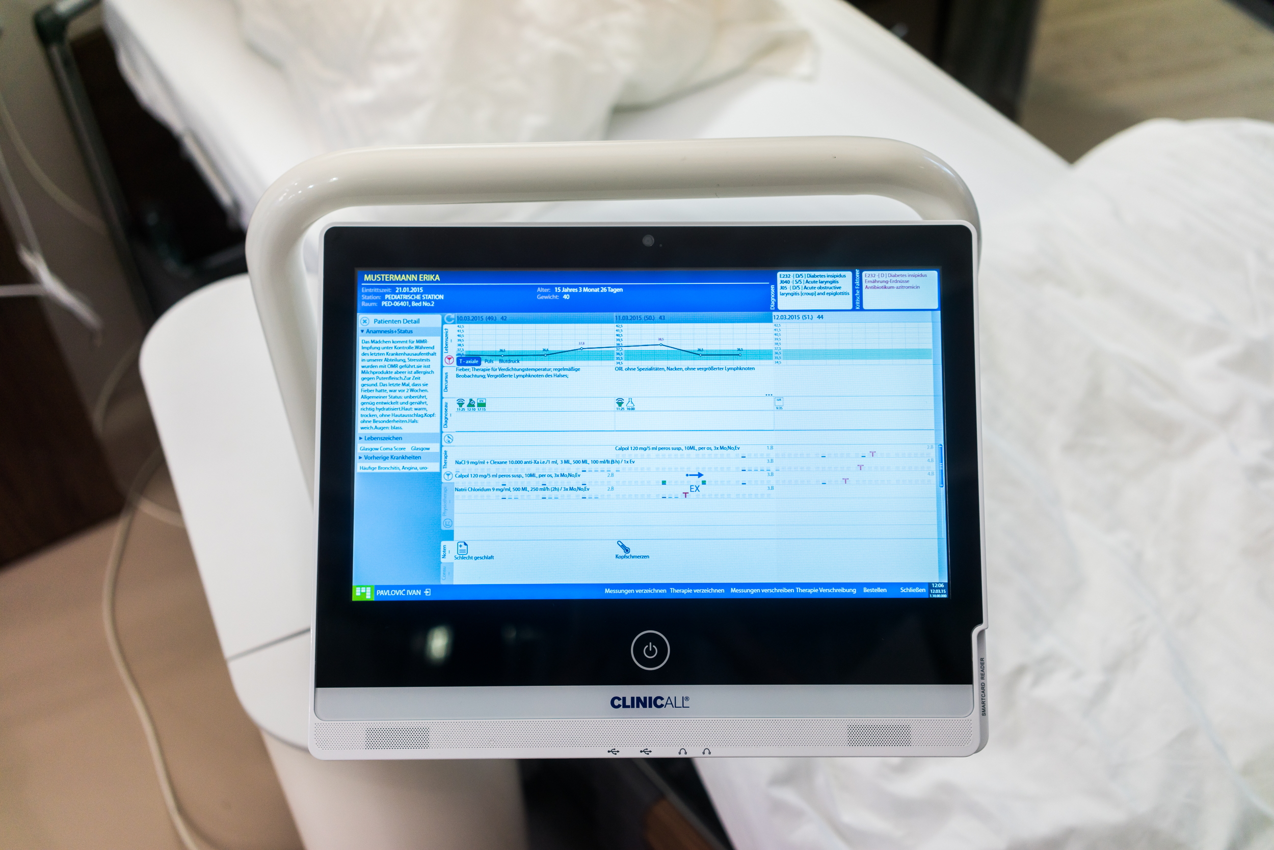 Parallel dazu hat das medizinische Personal über dasselbe Bedside-Terminal - in einem geschützten Bereich - direkten Zugriff auf alle relevanten medizinischen Daten. Dies ermöglicht eine nahtlose Hilfe und Unterstützung während der gesamten medizinischen Therapie, und Behandlung für alle beteiligten Mitarbeiter. Denn Dank der flexiblen Dokumentation und Datenbereitstellung hat jeder Mitarbeiter direkt bei dem entsprechenden Patienten Zugriff auf aktuellste medizinische Informationen, was im Notfall Leben retten kann.