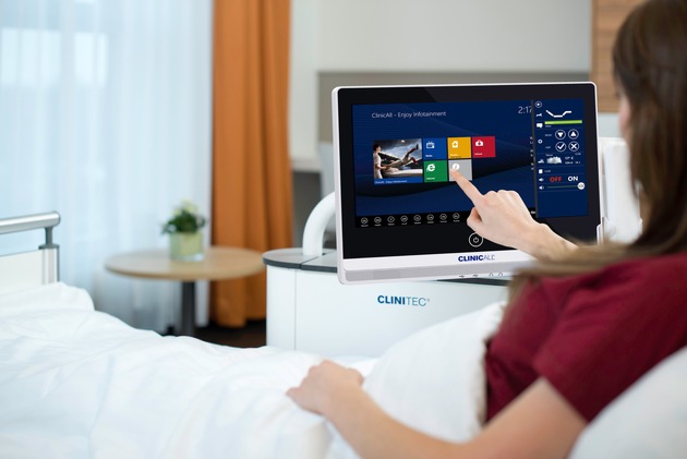 Das ClinicAll-Bedside-Terminal bietet Zugang zu Unterhaltungsangeboten per IPTV, Video-on-Demand-Angeboten und Computerspielen, enthält einen Web-Browser samt direkter Links zu den wichtigsten Webmail- und Social-Media-Angeboten und stellt auch die Bedienoberfläche für das integrierte Durchwahltelefon zur Verfügung. Doch sein Nutzen geht noch deutlich weiter. Denn die Terminals erlauben den behandelnden Ärzten und dem medizinischen Personal auch den vollen Zugriff auf die digitalen Patientenakten. So lassen sich Untersuchungsergebnisse, Heilungsverläufe und ähnliche Daten beim Besuch am Krankenbett abrufen und gegebenenfalls den Patienten erklären.