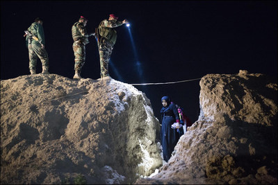 Das Foto mit dem Titel "Flucht vor der Terrorgruppe Daesh" zeigt die angstvolle Flucht einer schwangeren Frau, die versuchte, unter äußerst schwierigen Bedingungen und unter Lebensgefahr einen sicheren Ort von einem Bezirk nahe Mossul aus zu erreichen, der von der Terroristengruppe Daesh umzingelt war.