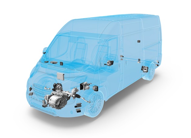 Mit seinem breiten Technikportfolio bildet der Innovation Van den Konzernanspruch "see. think. act" auf anschauliche Weise ab: Das gesamte ZF-Sensorset bestehend aus Kamera-, Radar- und Lidarsensoren sorgt dafür, dass der Lieferwagen seine Umgebung jederzeit vollumfänglich wahrnimmt. Der Zentralcomputer ZF ProAI übernimmt die Steuerung, verarbeitet die von den Sensoren generierten Daten und lässt das Fahrzeug auch auf komplexe Situationen angemessen reagieren. Zuletzt setzen intelligente mechatronische Systeme wie die elektrische Servolenkung und das integrierte Bremssystem IBC die Anweisungen des Zentralcomputers zuverlässig um. Für den rein elektrischen und damit lokal emissionsfreien Antrieb sorgt das elektrische Achsantriebssystem für Pkw und leichte Nutzfahrzeuge.