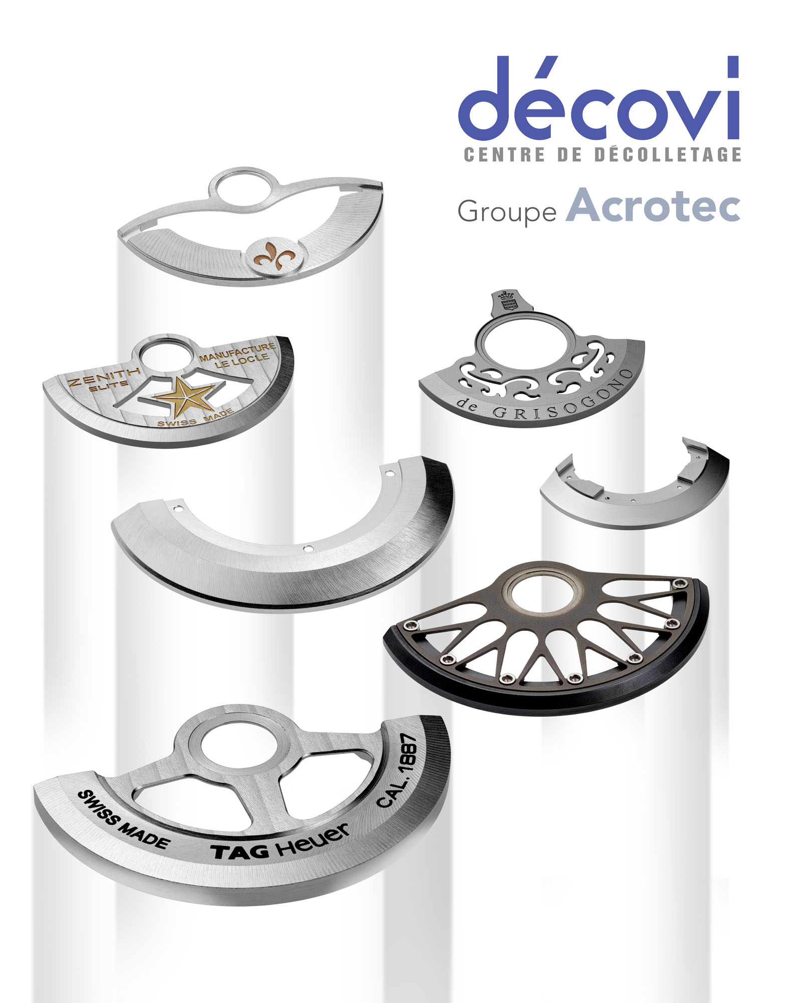 Décovi S.A. produit, depuis quelques années, des masses oscillantes pour l'industrie horlogère. Un large éventail de plus d'une centaine de modèles différents de masses a été réalisé, comme des segments de masses à monter sur des planches en laiton ou titane et des masses monoblocs. Spécialisée dans le décolletage haut de gamme de pièces complexes depuis 1947, la société Décovi S.A. compte 75 employés, dont 4 apprentis. Ses secteurs d'activités sont : l'aéronautique, l'aérospatiale, l'appareillage, le décolletage, l'horlogerie, le domaine médical et dentaire et les micromoteurs. Grâce à son nouveau département de fraisage, Décovi est capable de produire des pièces complexes à haute valeur ajoutée de dimensions maximales de 800/500/300 mm. Décovi produit aussi des pièces de tournage jusqu'à 65 mm de diamètre. Les moyens de production de Décovi sont entièrement automatisés et permettent ainsi d'être concurrentiel du prototype à la production en grande série. Les masses oscillantes sont marquées du sceau « Swiss made ». La première certification ISO 9002 est de février 1996 ; le renouvellement de la norme ISO 9001 et l'obtention de la norme ISO 13485 (domaine médical) de juin 2006 ; le renouvellement de la norme ISO 9001 Version 2008 et l'obtention de la norme 14001 (environnement) de juin 2008. www.decovi.ch