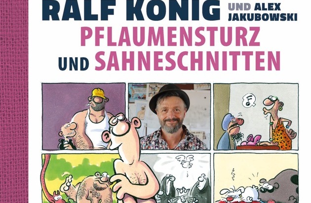 "Pflaumensturz und Sahneschnitten - 65 Jahre Ralf König" - Egmont Comic Collection, EUR 35,00, ISBN 978-3-7704-1165-8 ist ab dem 5. August 2025 im Handel erhältlich und auch unter www.egmont-shop.de