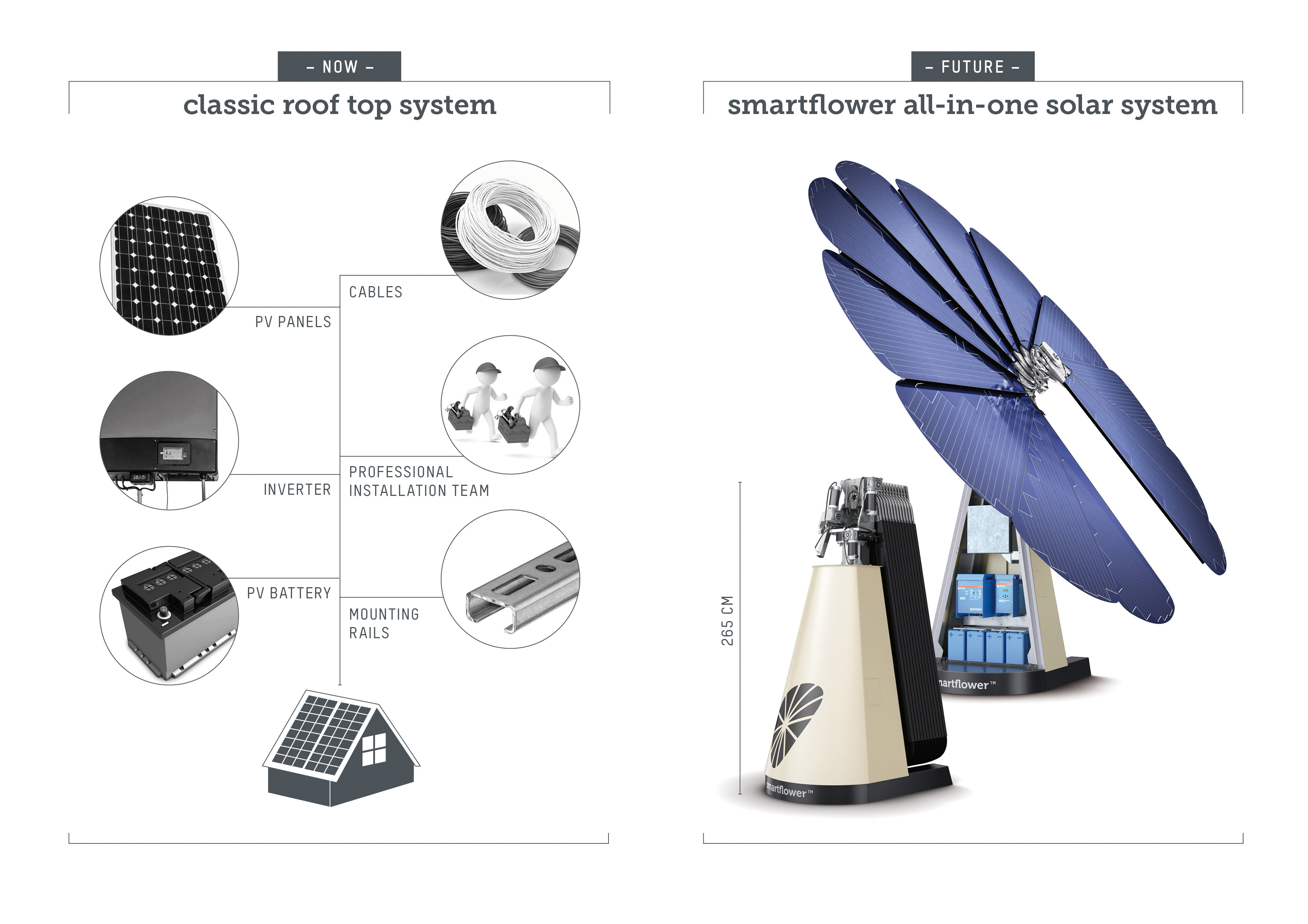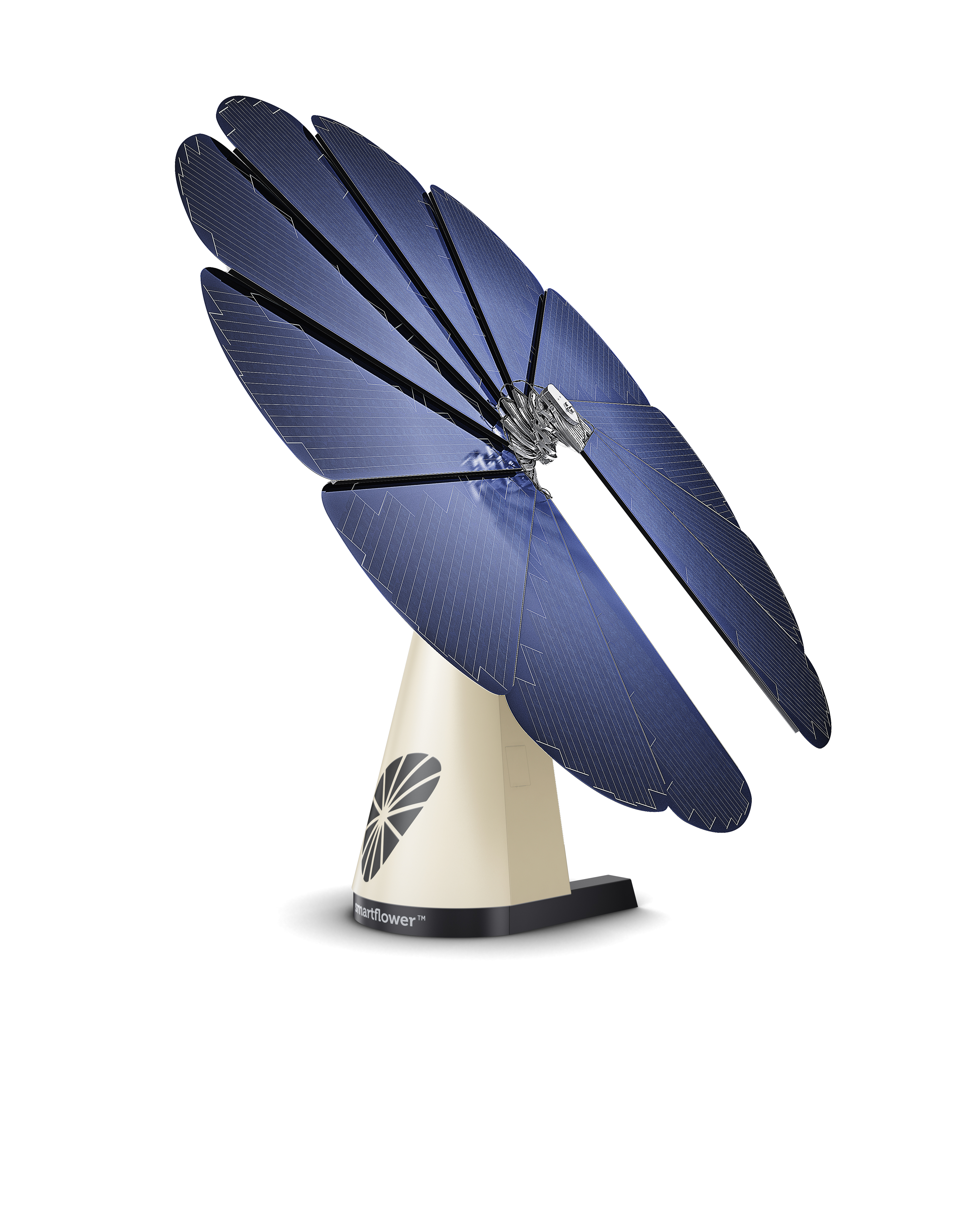 Mit den ersten Sonnenstrahlen öffnet smartflower ihre kreisrunden 18 m2 großen Solarmodulfächer und produziert Strom. Nicht nur das Design, auch die Effizienz sind von der Sonnenblume inspiriert - mit zwei beweglichen Achsen folgt die Anlage vollautomatisch bis zum letzten Sonnenstrahl dem Verlauf der Sonne. "Unabhängigkeit ist ein essentielles Thema bei uns. Dabei ist uns ist nicht nur wichtig, Strom bestmöglich zu produzierten, sondern auch die effiziente Nutzung", erklärt Geschäftsführer Alexander Swatek die Motivation bei der Neuentwicklung.