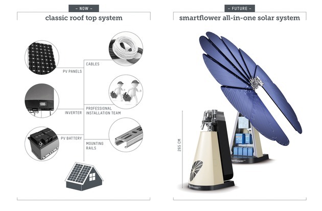 Das weltweit erste All-in-One Solarsystem smartflower POP+ überzeugt mit integriertem Stromspeicher und ist somit zu 100% netzautark bei Tag und Nacht.