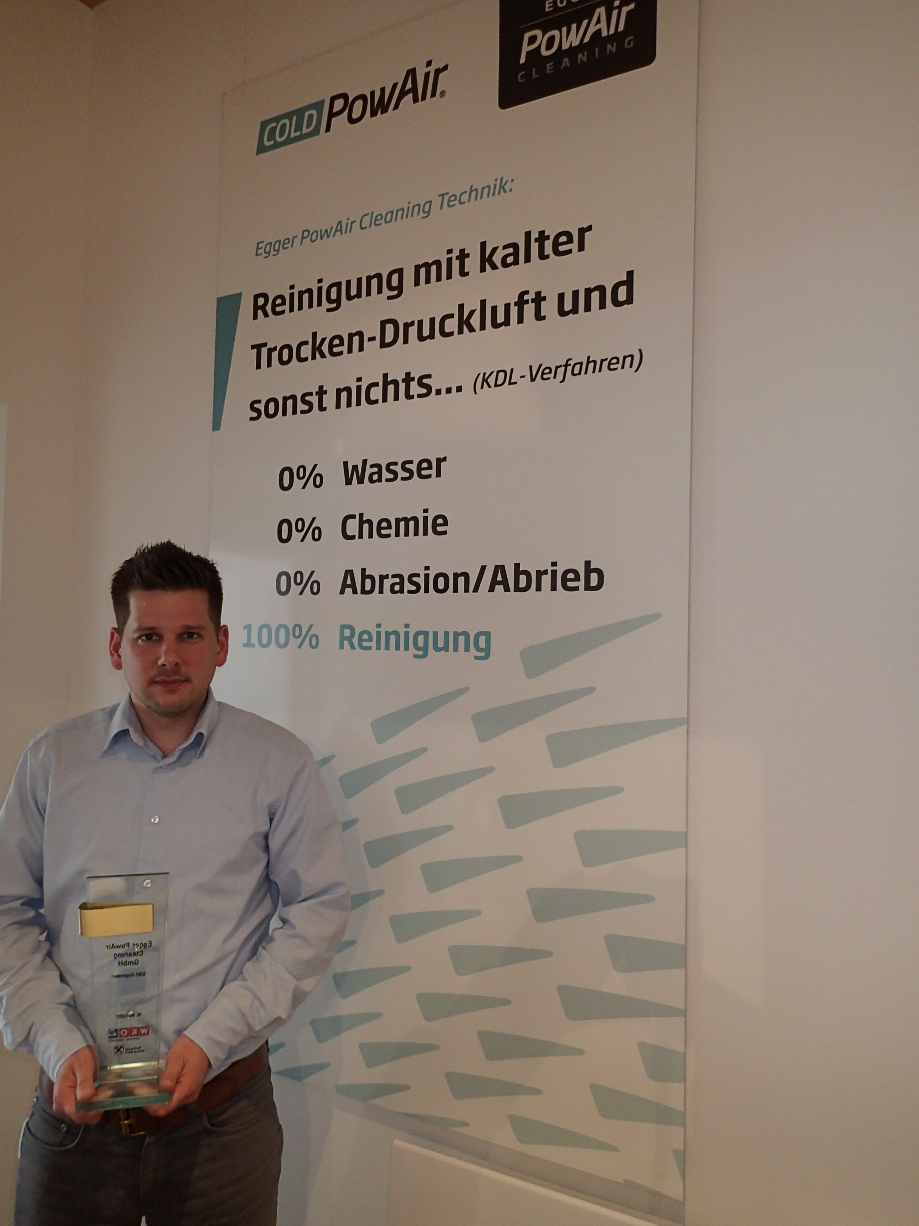 Robert Egger, Gründer und Geschäftsführer der Firma Egger PowAir Cleaning GmbH nahm die Ehrung für alle Mitarbeiterinnen und Mitarbeiter entgegen.