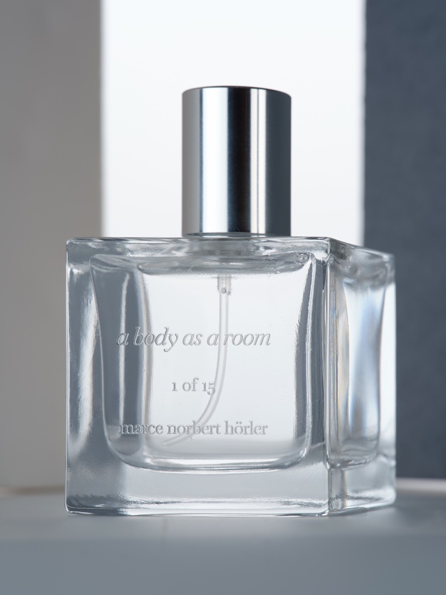 Ein dezenter, floraler Hauch des Moleküls Hedion durchzieht den Ausstellungsraum – ein sinnlicher Impuls, der ihn erweitert und das Potenzial birgt, unsere Emotionen zu beeinflussen. Die molekulare Essenz wurde zu einem Parfum weiterentwickelt und erscheint in der limitierten Edition a body as a room, herausgegeben vom Kunstverein St.Gallen.